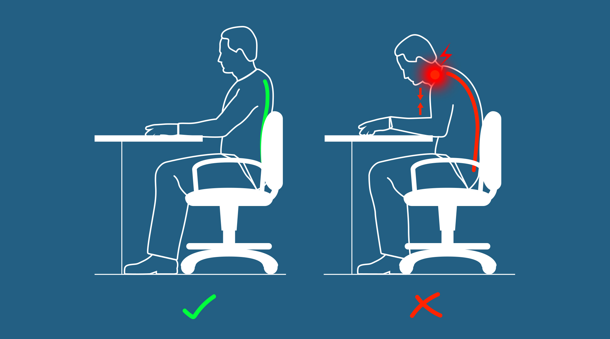 Η μη αντιστάθμιση της καθιστικής ζωής, η εργασία γραφείου και η μονόπλευρη θέση του κεφαλιού προκαλούν την προπέτεια του κεφαλιού και την παραμόρφωση της αυχενικής μοίρας.